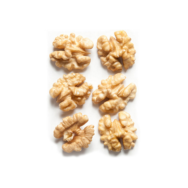 Natural walnut kernels consisting of a minimum of 80% Chandler halves. Nut kernels are clean, well-dried, free from excessive defects and damage, and graded in accordance with USDA and DFA standards for grades of shelled walnuts.